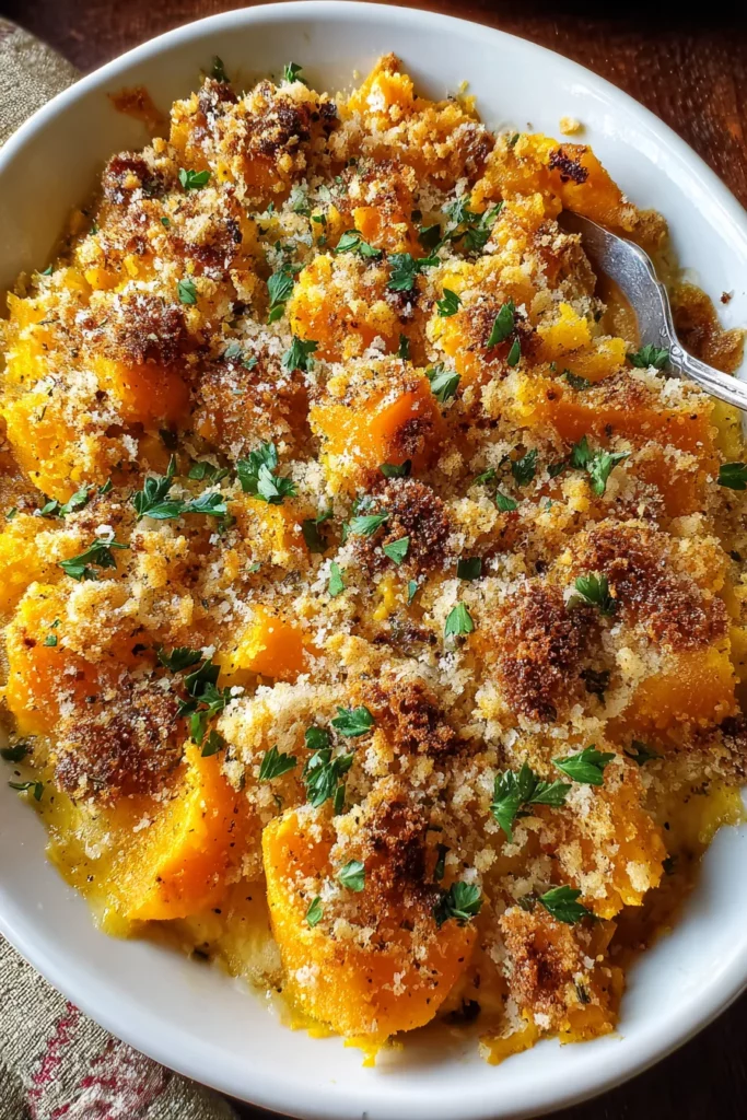 This Butternut Squash Casserole features tender, roasted squash blended with rich cream, spices, and a crunchy topping, delivering comfort in every bite.