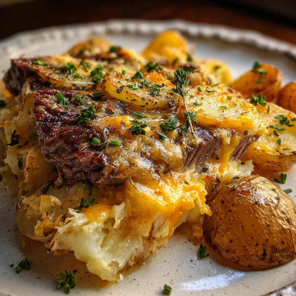 From the first forkful of ooey-gooey cheddar potatoes to that last juicy slice of garlic butter steak, Garlic Butter Steak & Cheddar Potato Bake is the ultimate comfort-food mashup. It works because the creamy sauce soaks into every potato, and the seared steak gets an extra boost from fresh herbs and garlic butter. It’s rich, cozy, and just a bit showy—perfect for weeknights or small dinner parties. Don’t forget you can print this recipe to save for later, and I’d love to hear your feedback or any mouthwatering tweaks you try in the comments below!